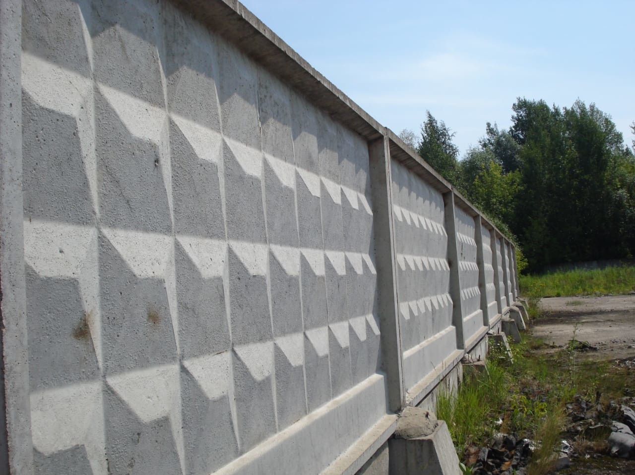 Огорожено высоким бетонным забором.